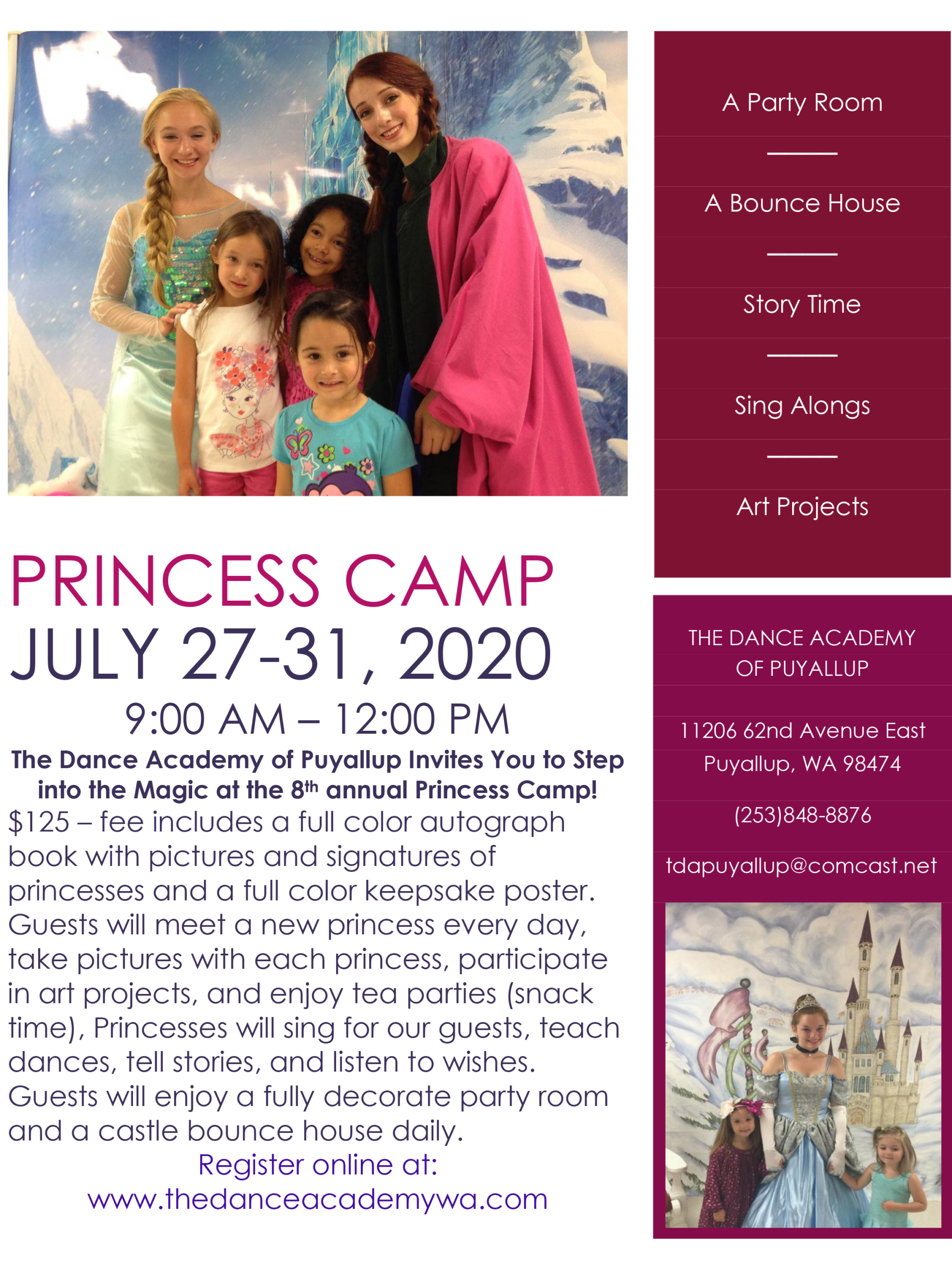 The Dance Academy of PuyallupPrincess Camp Monday - Friday July 26-30, 2021 9:00 AM-12:00 PM